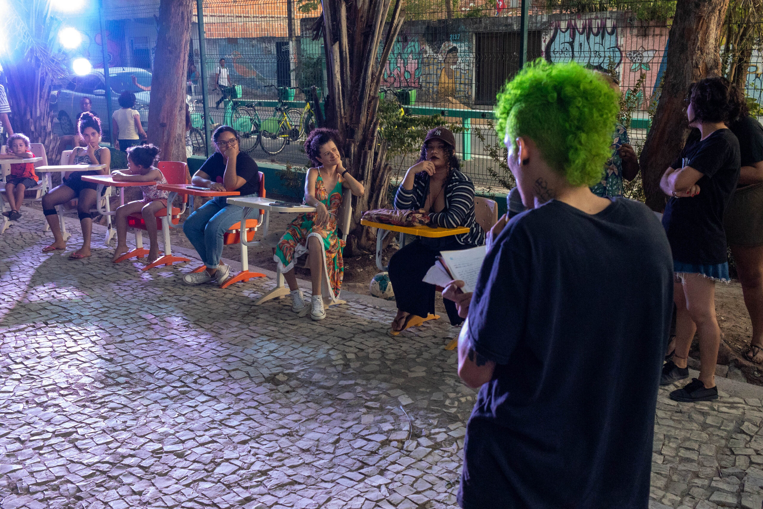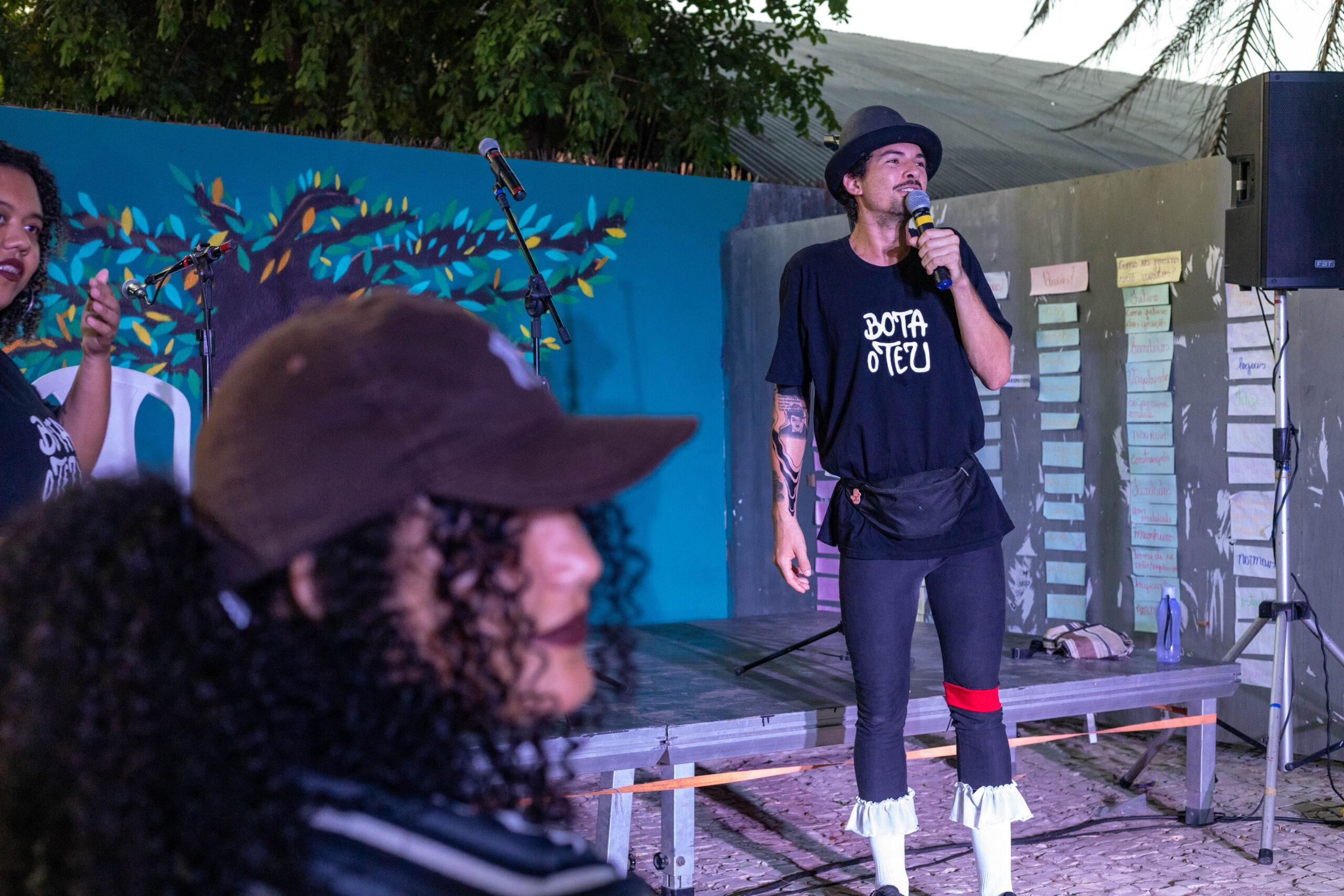 Finalizando a 6º Semana Nacional do Livro e da Biblioteca, a Biblioteca Cristina Poeta do CCBJ trouxe para o espaço Marielle o Sarau Bota o Teu!, um evento artístico e cultural que acontece mensalmente de forma independente na Praça do Restaurante Popular de Maracanaú. O Sarau BOTA O TEU! é um espaço de diversidade e pluralidade artística e cultural, onde a Arte é usada como armadura, luta e principal ferramenta para construir caminhos possíveis.