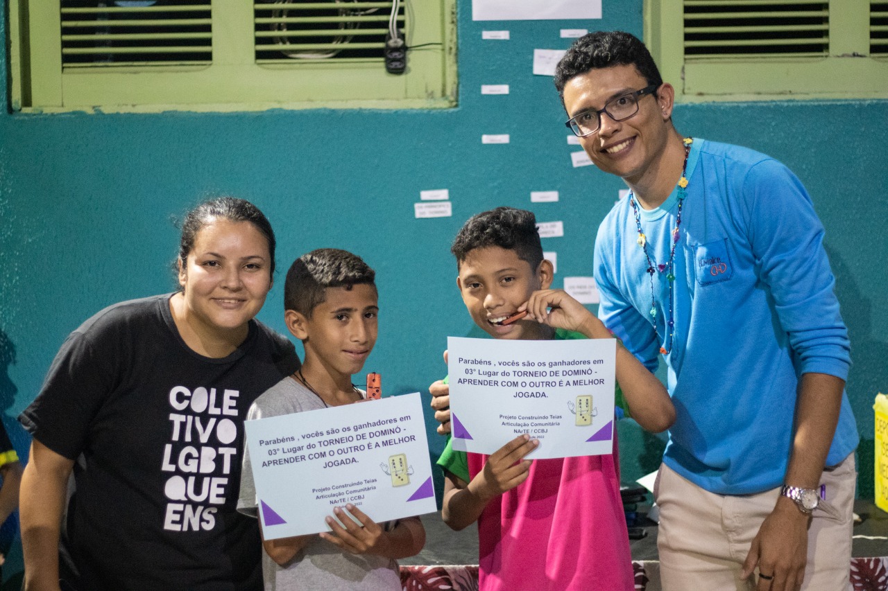 O CCBJ tem um programação semanal voltada para o público infantil da comunidade, então a criançada comemora com a gente o ano todo, além de participar de oficinas semanais com temas que envolvem direitos humanos, regras de convivência, produção de materiais artísticos e muito mais.