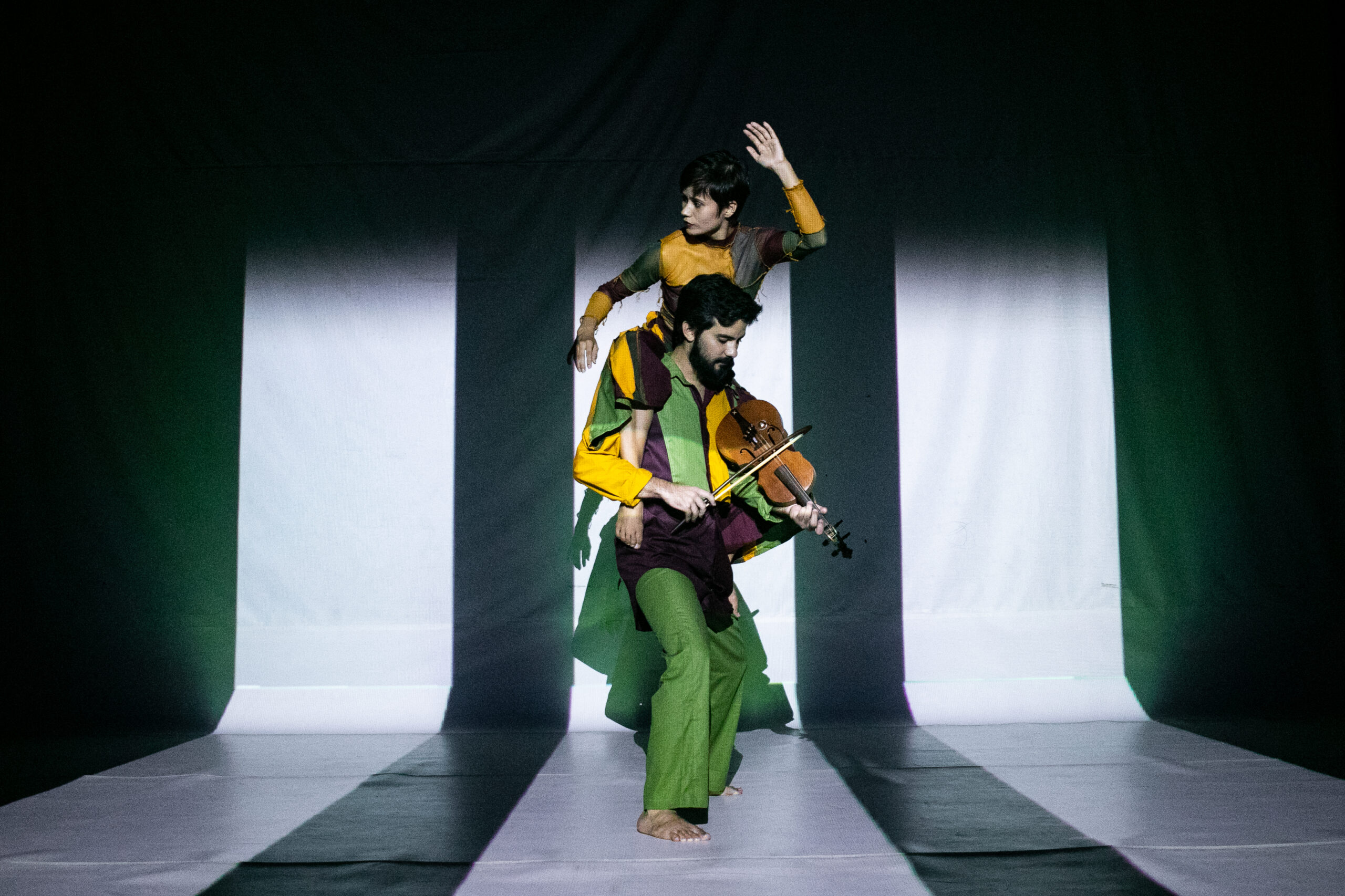 “Sempre dava algum erro na trilha sonora”, conta, referindo-se às suas experiências passadas. Por isso mesmo, ela queria a música como parte do processo, não como um elemento que meramente acompanha sua expressão artística principal – a dança. E, assim, a figura do músico deixa de funcionar como se fosse “parte do cenário”. A rabeca, então, é um instrumento que, conforme explica William, colabora para a movimentação do instrumentista e tem forte relação com a dança por ser pequeno e funcionar como extensão do corpo.