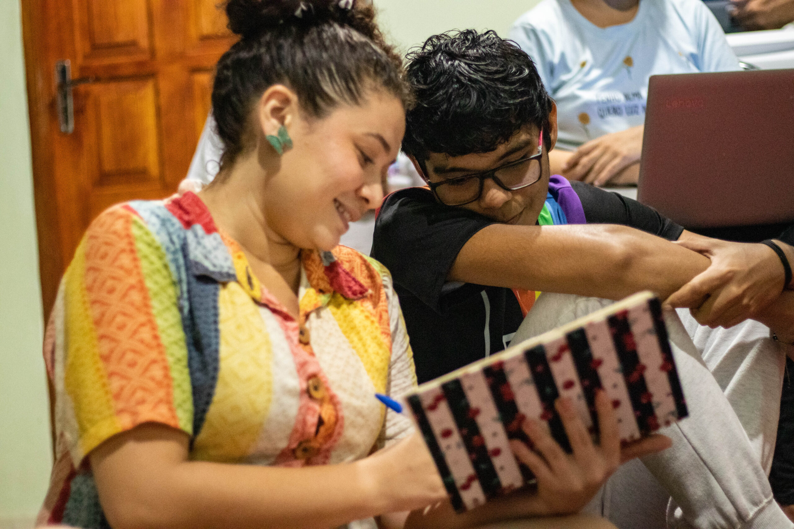“Como a gente aqui é um coletivo, muitas vezes fica muito sobrecarregado pra uma pessoa que sabe mais e outra que sabe menos, então a gente tá procurando equilibrar o grupo pra todo mundo contribuir. Como tá tendo muitos projetos, muitos editais, a gente quer conseguir entrar, conseguir se encaixar, trazer projetos pra cá também”, conta Ana Carla, aluna da AZC, que saiu da oficina de portfólio ministrada pelo educador social Aurianderson Amaro e produzida pelo CCBJ através do Núcleo de Articulação Técnica Especializada, direto para o primeiro Momento Bússola na AZC.