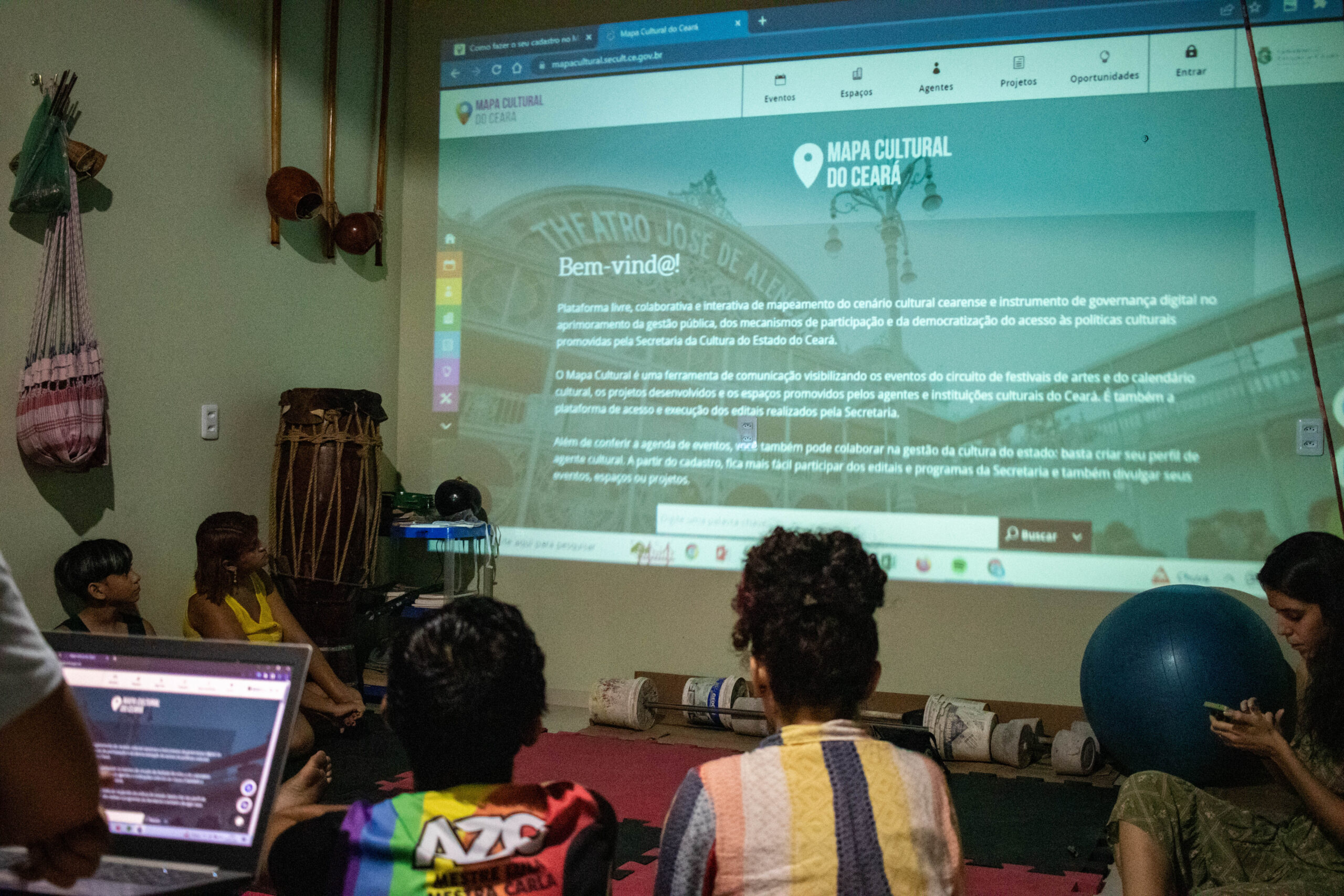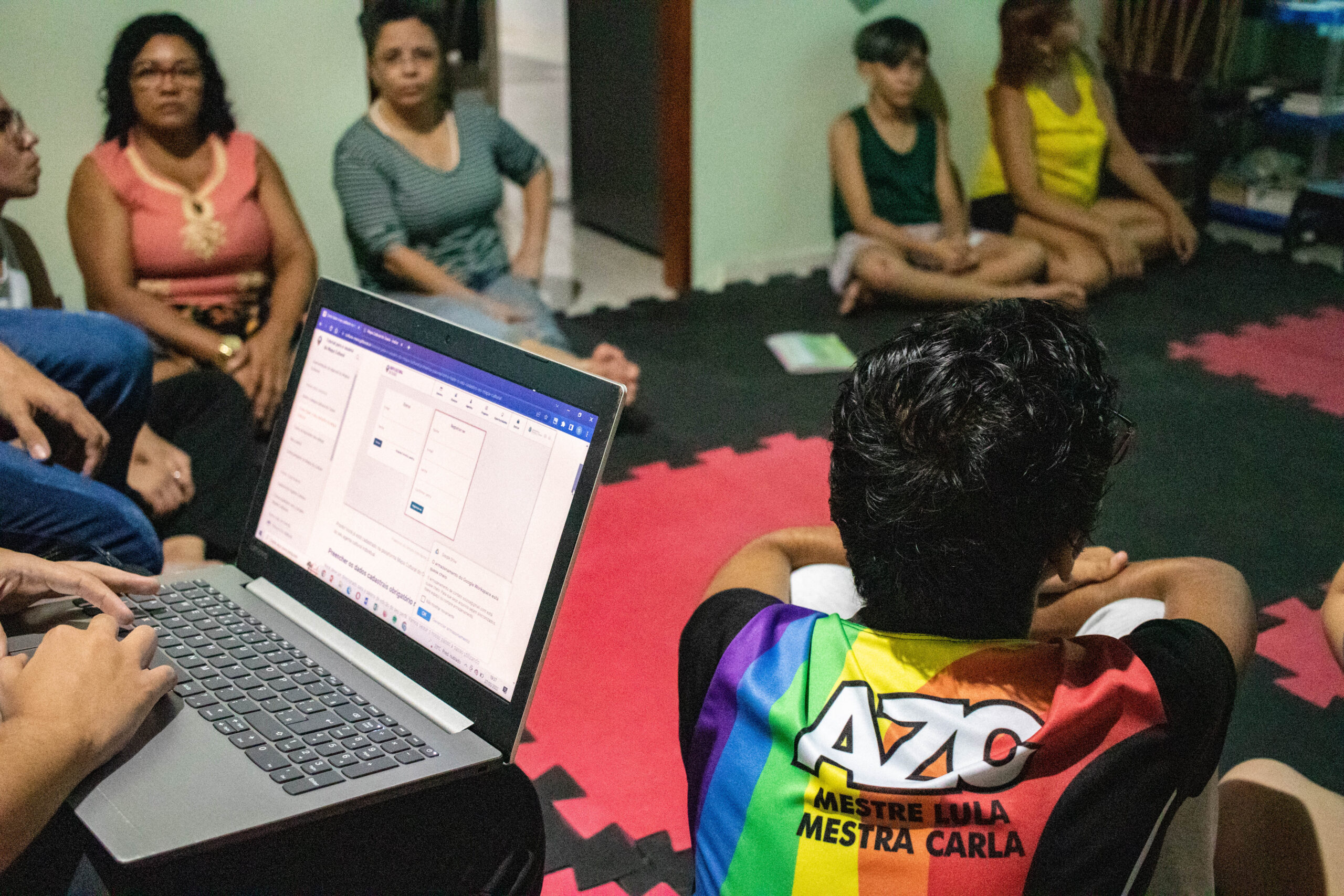 A participação do momento foi direcionada para público e parceiros da Associação Zumbi Capoeira AZC/Espaço Cultural AZC Mestre Lula. Mestra Carla, professora de capoeira da Associação, conta que “conta que esse encontro foi para que a gente pudesse se ajudar e se colaborar quanto pessoas e quanto grupo pra encontrar o caminho do mapa cultural. Porque ainda é distante pra alguns dos nossos, também até acreditar que a gente pode estar se inscrevendo nos editais. Parece ser uma coisa só pra grupos e coletivos e não pra pessoas”.