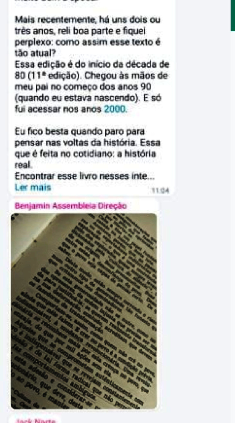 Acompanhe um dos registros da campanha em movimento pelo aplicativo de mensagem instantânea. Na ocasião, um colaborador oferece uma mensagem inspirada nas obras e Paulo Freire.