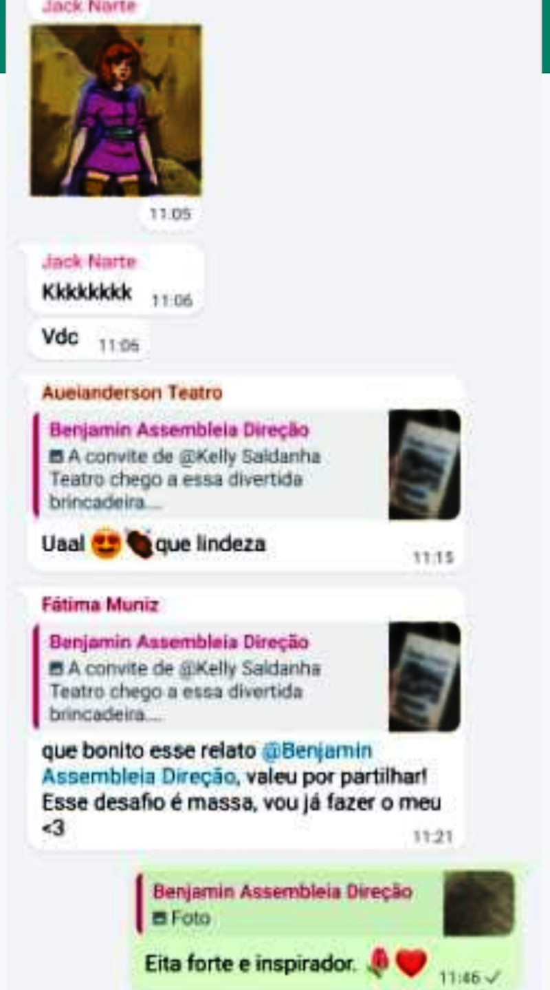 -Uma experiência sua que gostaria de compartilhar com a pessoa durante a pandemia ou durante a trajetória no CCBJ;