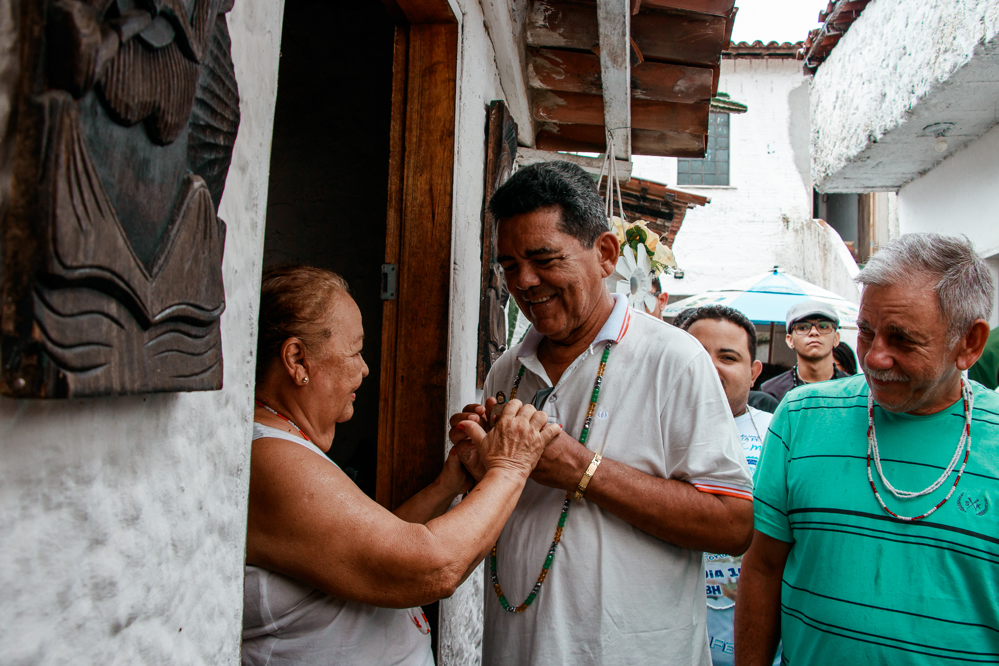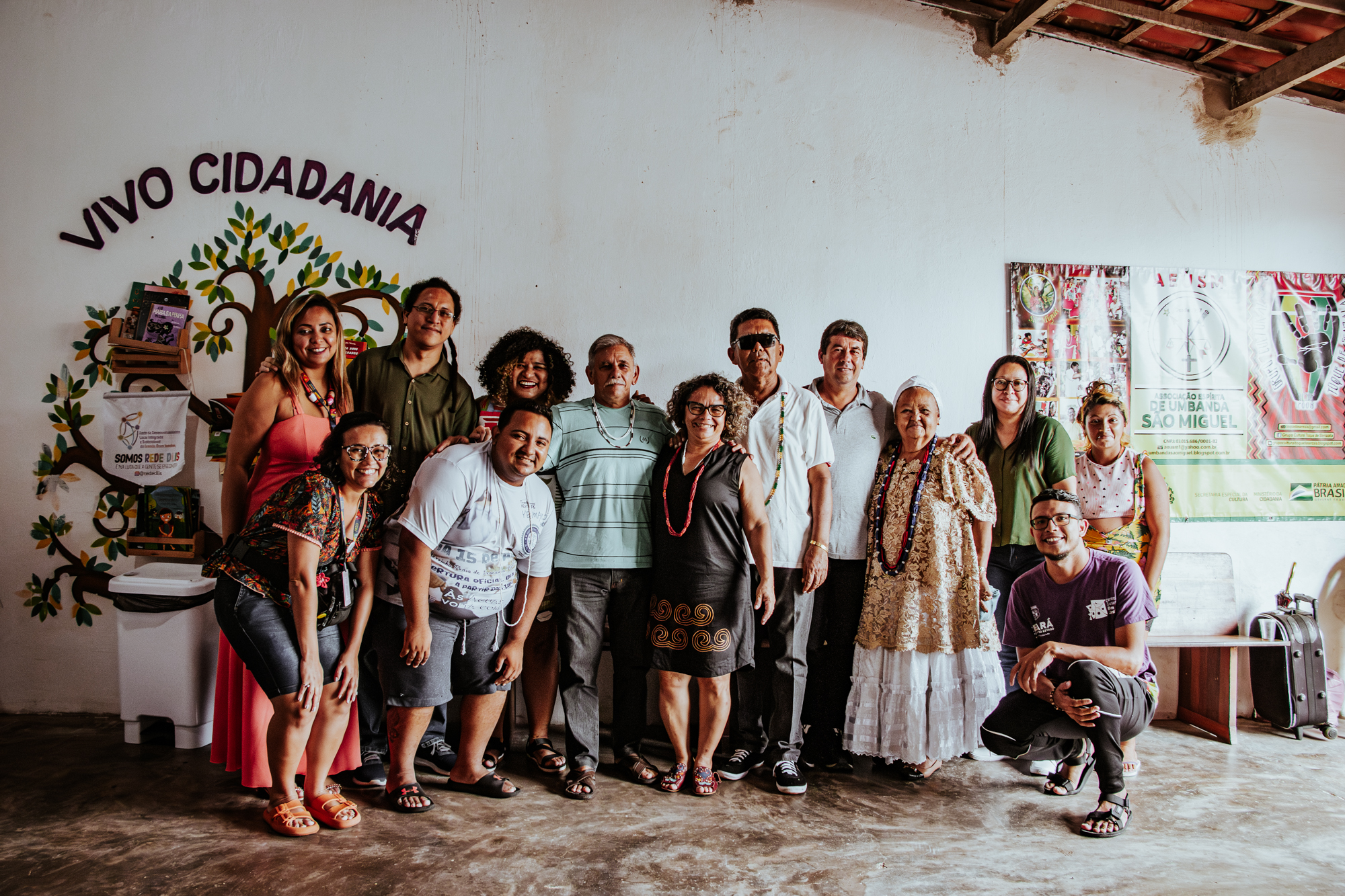 A primeira parada foi uma visita no Centro Espírita de Umbanda São Miguel do mestre da cultura Pai Neto Tranca Rua, onde ocorreu um momento de troca com uma roda de conversa e apresentação da trajetória do avô de santo e sua atuação no território até às 11h00.
