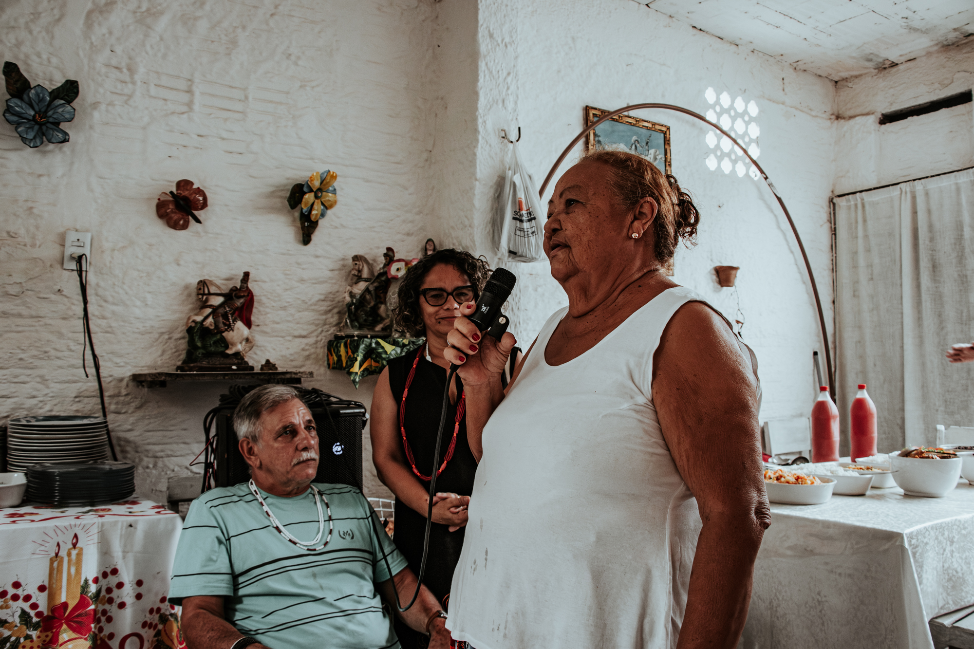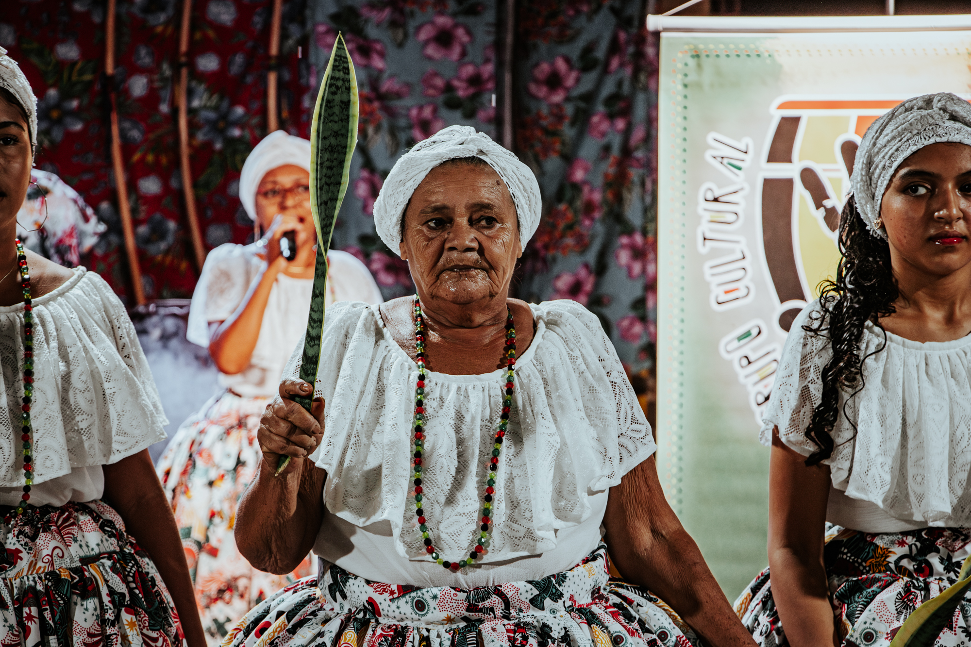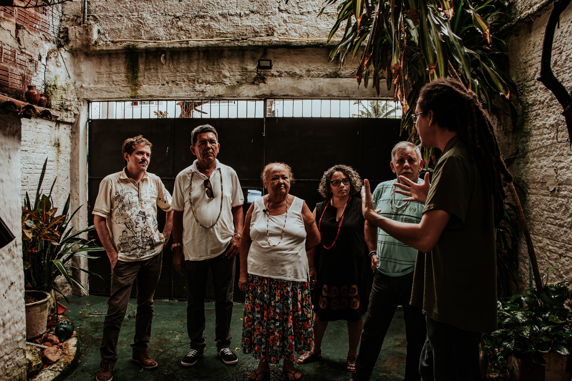 Na casa de Mãe Zimá, os participantes dividiram um almoço coletivo e puderam conhecer o espaço da mestra, partilhando um momento de integração e descontração. Em seguida, a programação foi continuada no Teatro Marcus Miranda, espaço do Centro Cultural Bom Jardim, de 14h00 às 16h00.