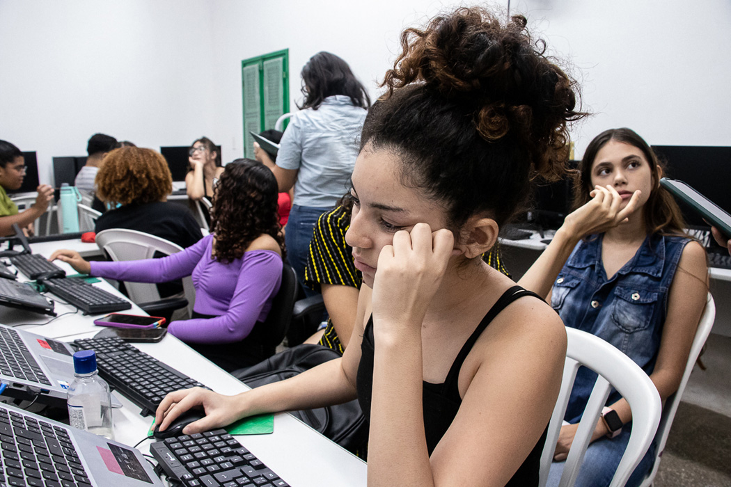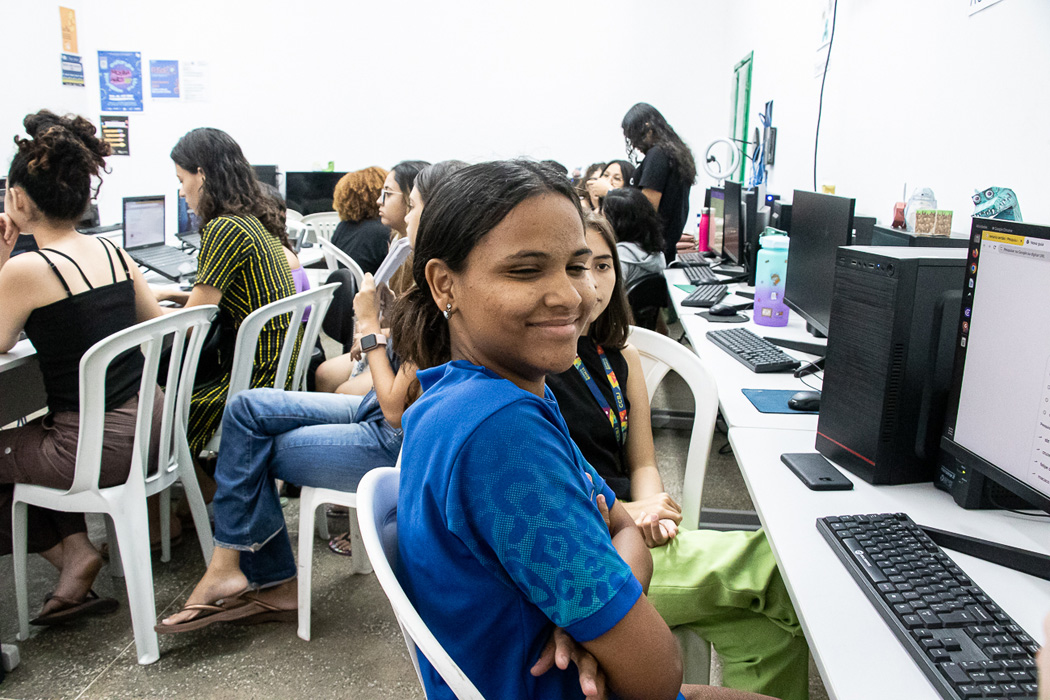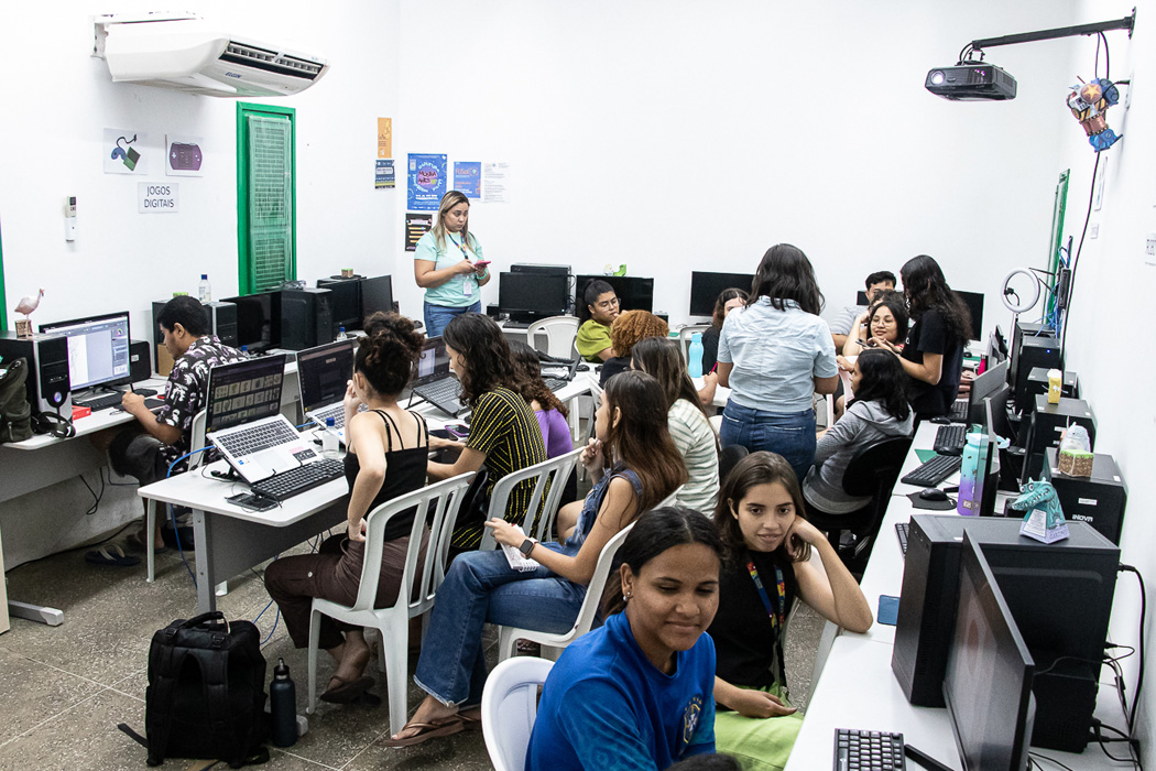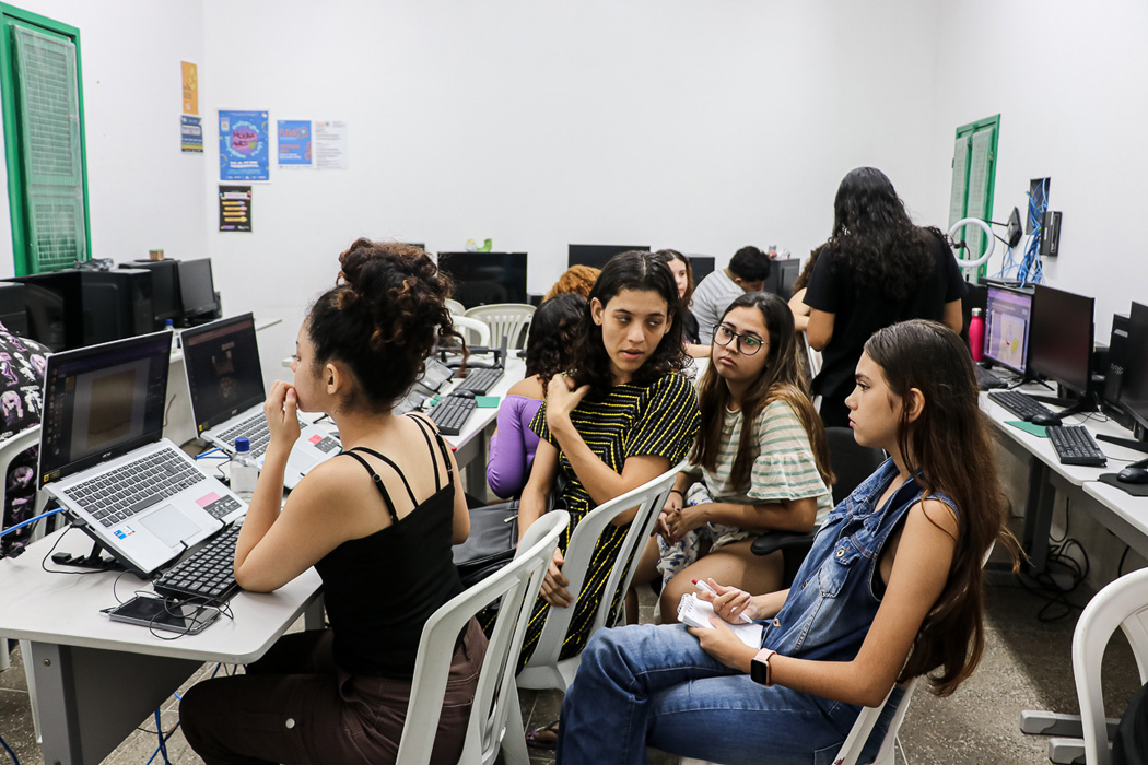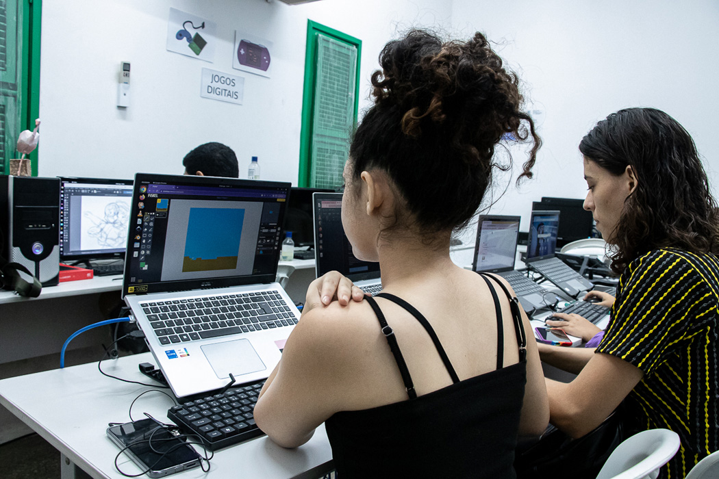 Incentivando meninas e mulheres da comunidade a investirem em seus futuros em áreas da tecnologia, o Centro Cultural Bom Jardim (CCBJ), equipamento da Rede Pública de Equipamentos Culturais da Secretaria da Cultura do Ceará (SECULT), gerido em parceria com o Instituto Dragão do Mar (IDM), promoveu de junho a agosto de 2023 o curso Mulheres na Programação: Desenvolvimento de Jogos Digitais.