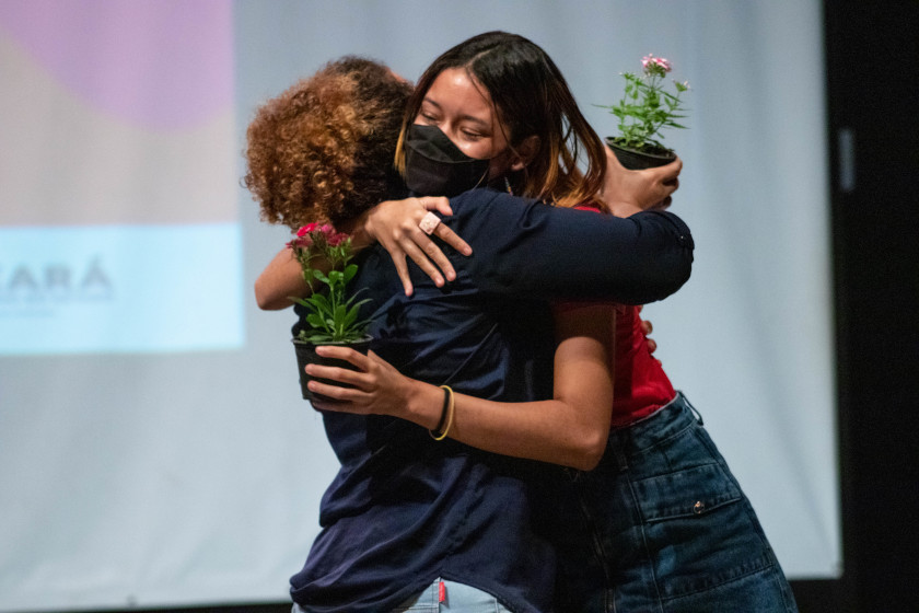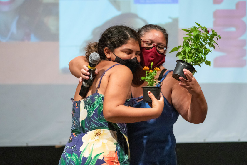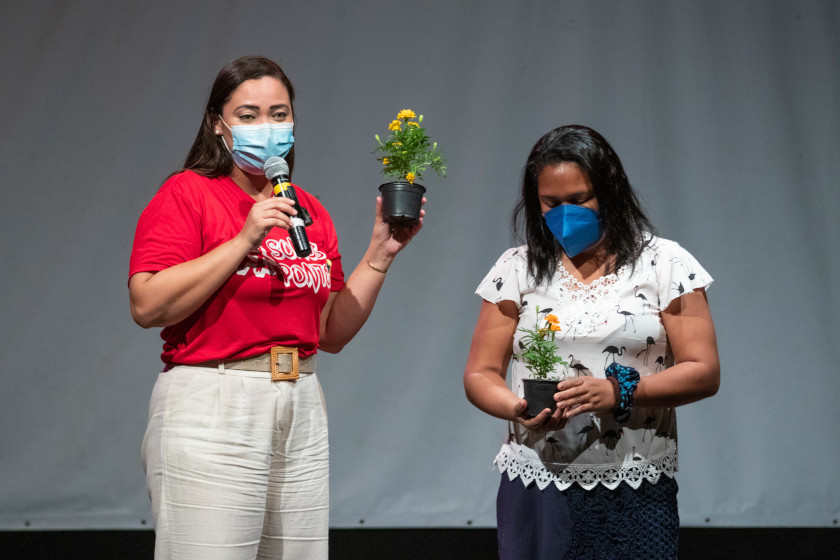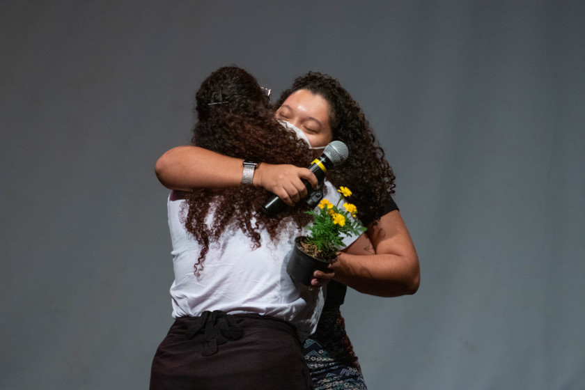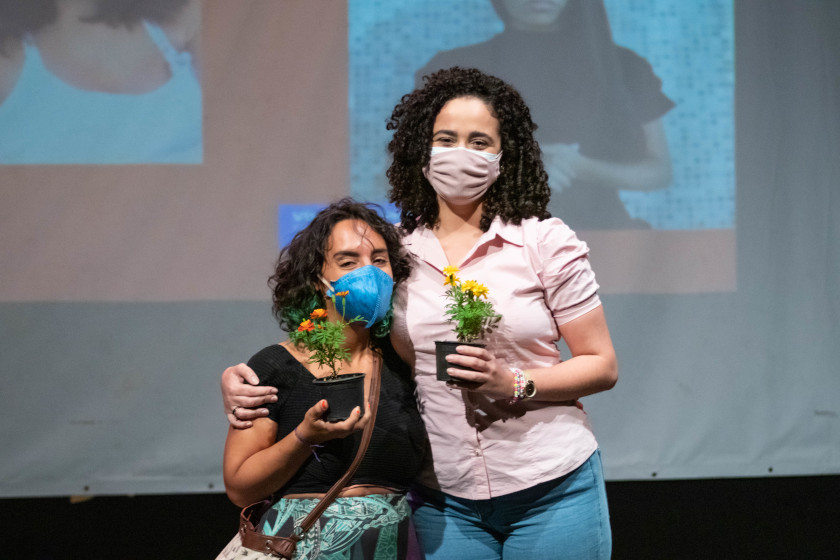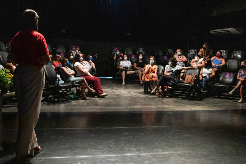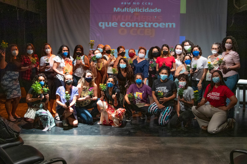 O Centro Cultural Bom Jardim (CCBJ), neste mês de março, realizou várias ações ao público externo, no formato virtual e presencial, em alusão ao Dia Internacional das Mulheres – 08 de março. Integrando a programação realizou a campanha interna #8M- Multiplicidade de Mulheres que constroem o CCBJ, com conteúdo nas redes sociais e site, enaltecendo as fotos das mulheres do Centro e na tarde do dia 10 de março, realizou um momento especial para a mulherada. O Teatro Marcus Miranda foi palco para as 50 mulheres que fazem o equipamento. Elas são a maioria, de um total de 93 trabalhadores. Na ocasião, foi dada às boas vindas e o agradecimento pela presença de todas, em seguida, tiveram sessão de cinema com a curadoria de quatro curtas-metragens, assinados pela Coordenadora do Programa De Audiovisual da Escola de Cultura e Artes (ECA/CCBJ), Rúbia Mércia. Foram exibidos: Amaré de Mel Andrade, assistente pedagógica do Programa de Teatro, O Deserto é o fora, de Rúbia Mércia, Sapatão uma rachadura no sistema, de Dévora Mc e Fartura Abundance, de Yasmin Thainá.