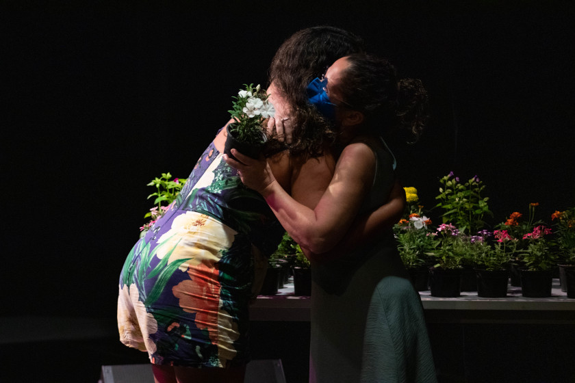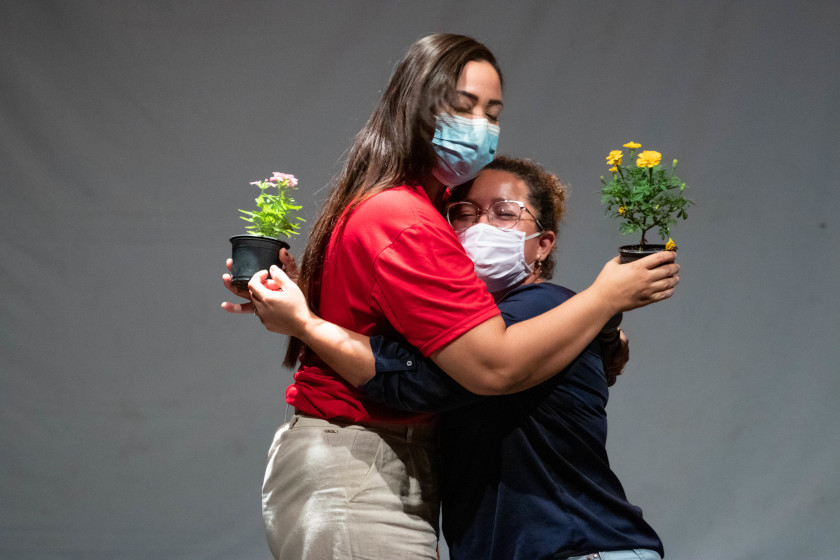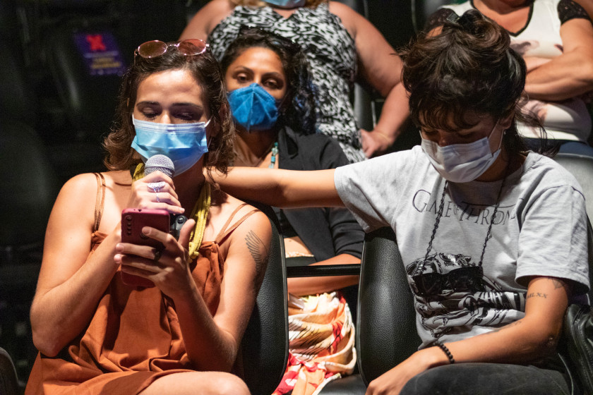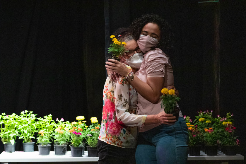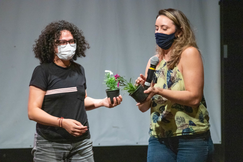 Os curtas trazem cenas e reflexões que atravessaram as presentes e deram o tom da roda de conversa, logo após a exibição. As temáticas circundam reconexão ancestralidade com o universo materno, religiões de matrizes africanas, a relação com o mar, a maternidade e os registros de um isolamento social em tempos pandemicos, as festas e o cotidiano doméstico de famílias negras e periféricas, a relação entre comida, cozinha e família e a crítica a exaustão de trabalhos e vidas maçantes, na perspectiva da mulher sapatão. Esses assuntos foram gatilhos para a roda de conversa potente entre as mulheres do CCBJ, que relataram momentos particulares, emocionantes regados de muita memória afetiva, entre as companheiras de trabalho. Foi um momento de entrega, partilha e de reconexão. Ao final as mulheres participaram de uma dinâmica, oferecendo flores umas às outras, seguindo a ideia de “amigo secreto” e ofertando afeto e boas palavras. Após o encontro, as mulheres reuniram-se na Biblioteca Cristina Poeta para o lanche da tarde, com música e literatura.