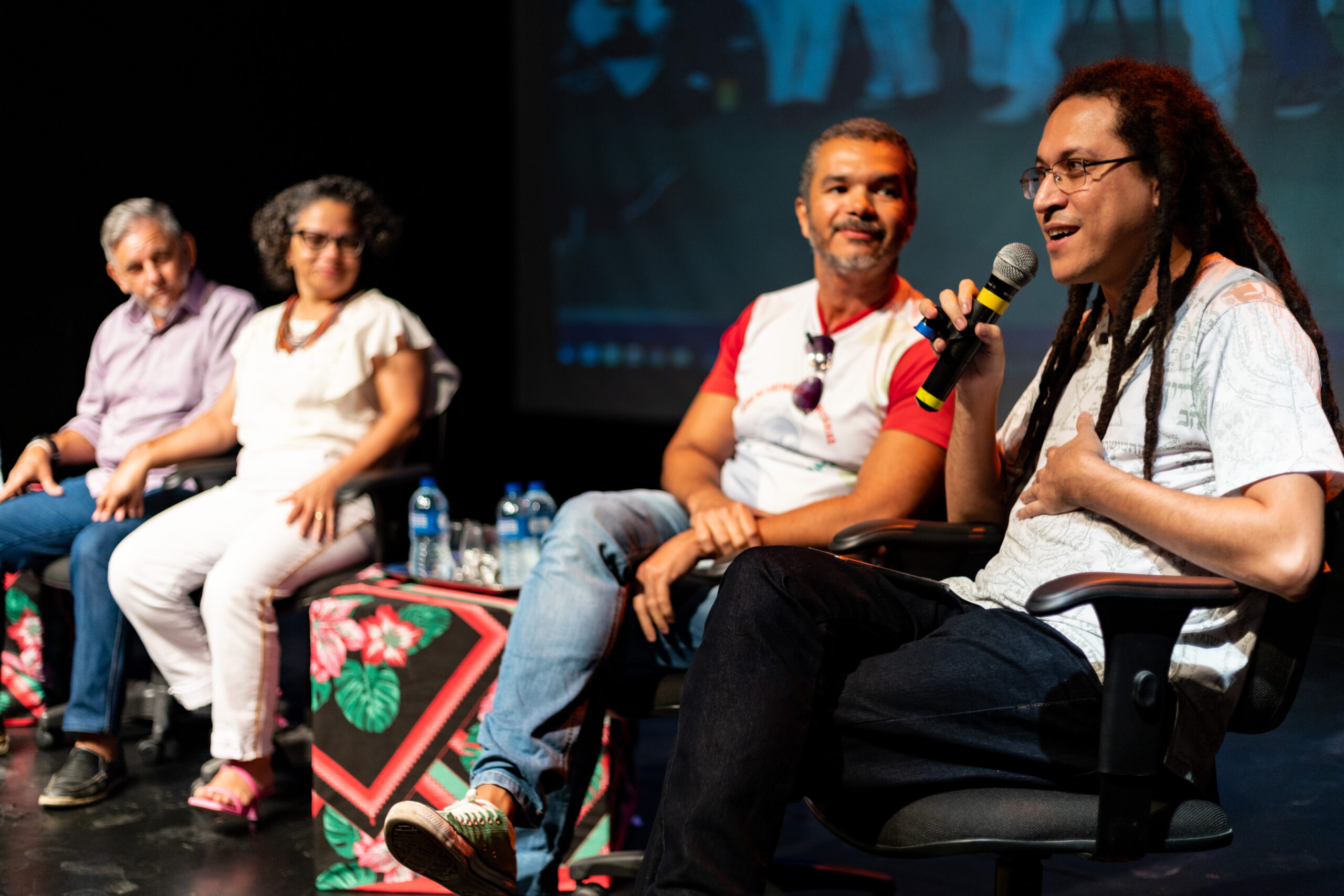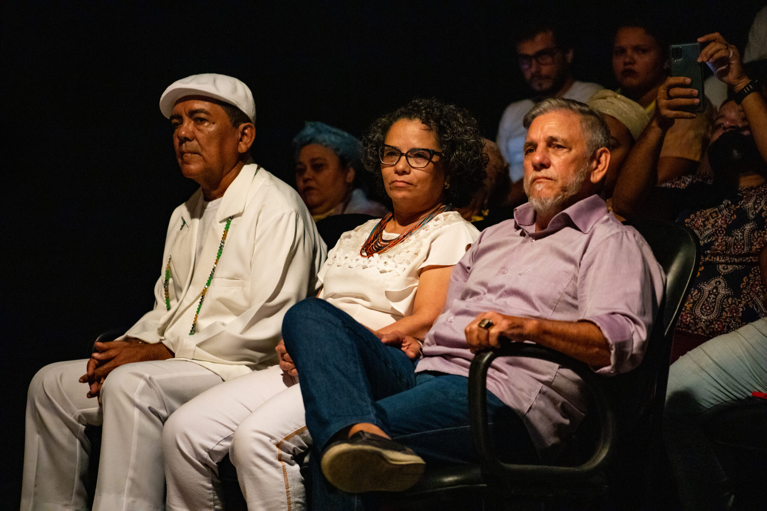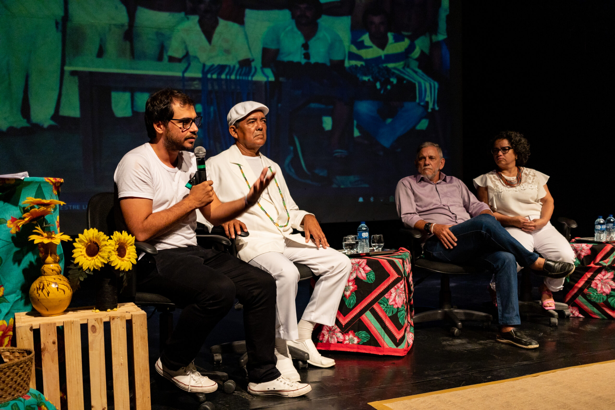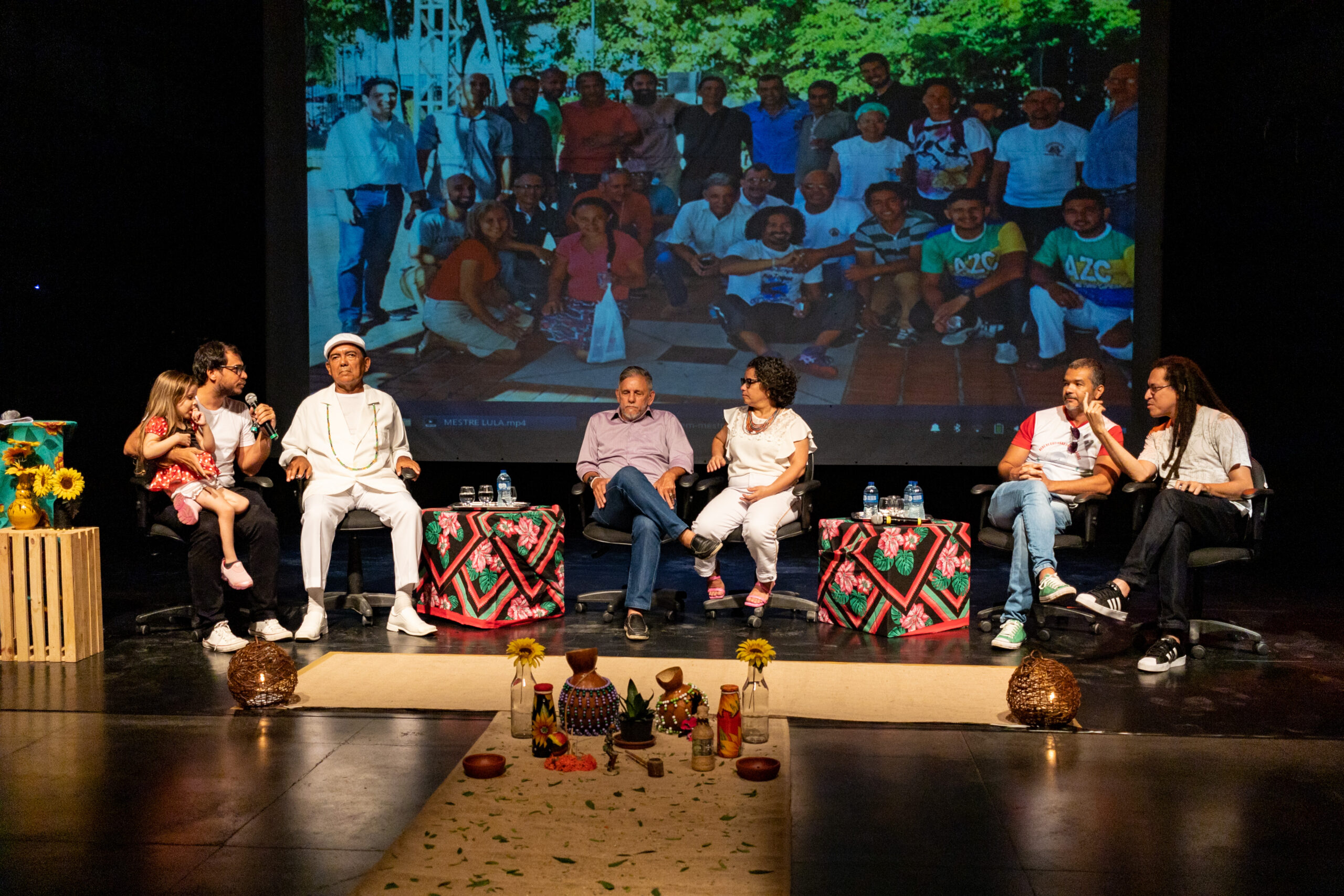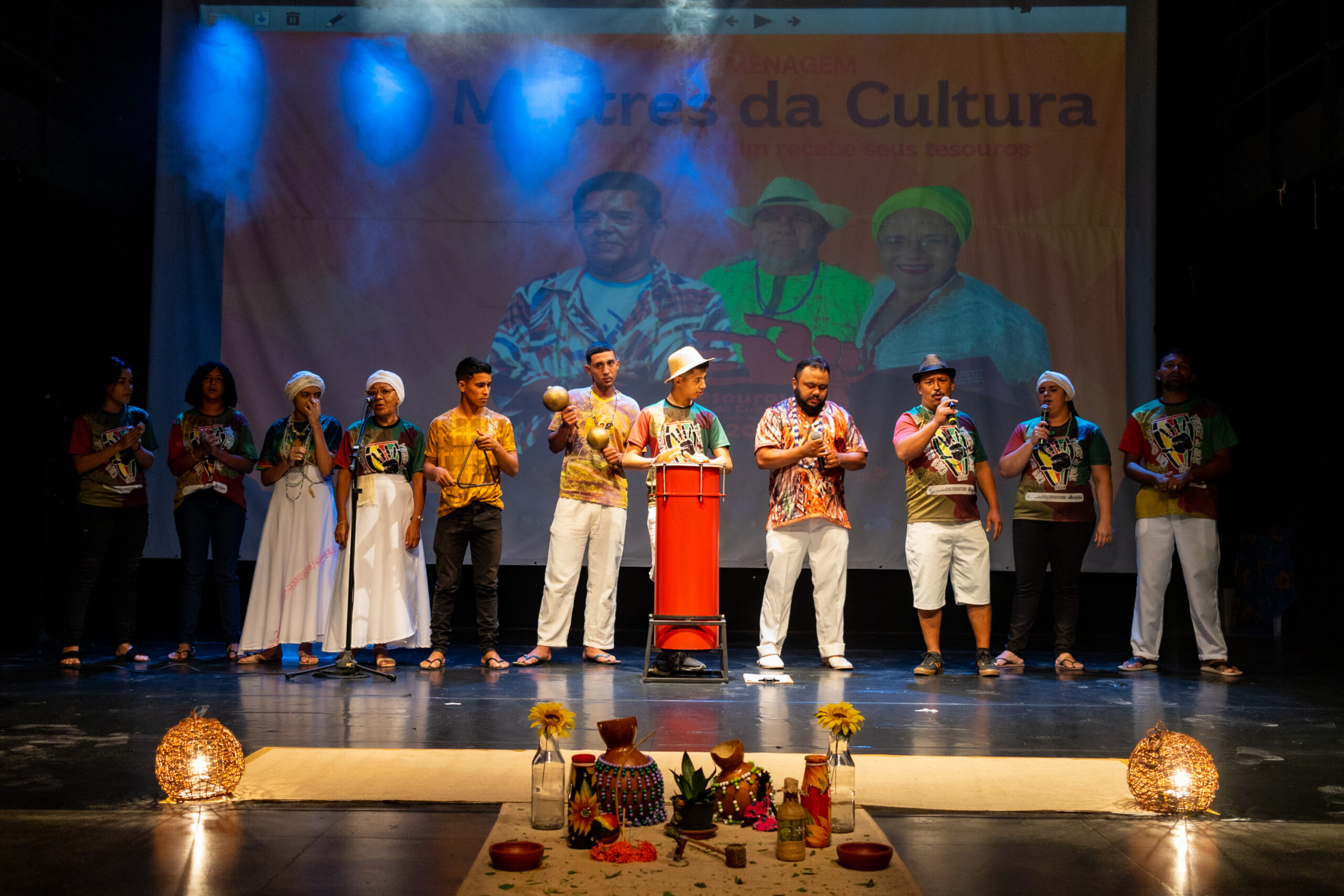 A homenagem aconteceu no Teatro Marcus Miranda do CCBJ e contou com uma abertura especial realizada pelo grupo Toque de Senzala, com os toques “louvação às caboclas de pena”, reverenciando as entidades femininas presentes no culto afrobrasileiro, entoando os pontos mais populares nos terreiros de umbanda. Em seguida, foi realizada uma mesa composta pelos Mestres, pelo gestor executivo do CCBJ, Marcos Levi Nunes, pelo Coordenador da Rede Pública de Equipamentos Culturais, Caio Feitosa, e, representando o Ponto de Memória do Grande Bom Jardim, Adriano Almeida.