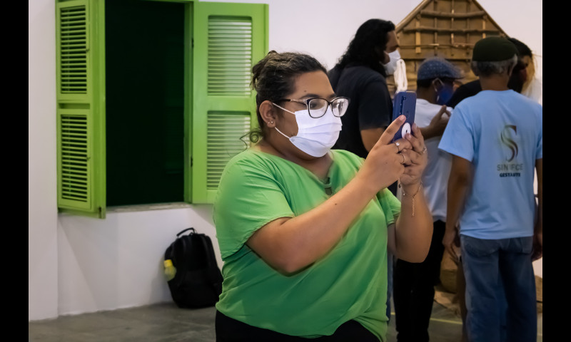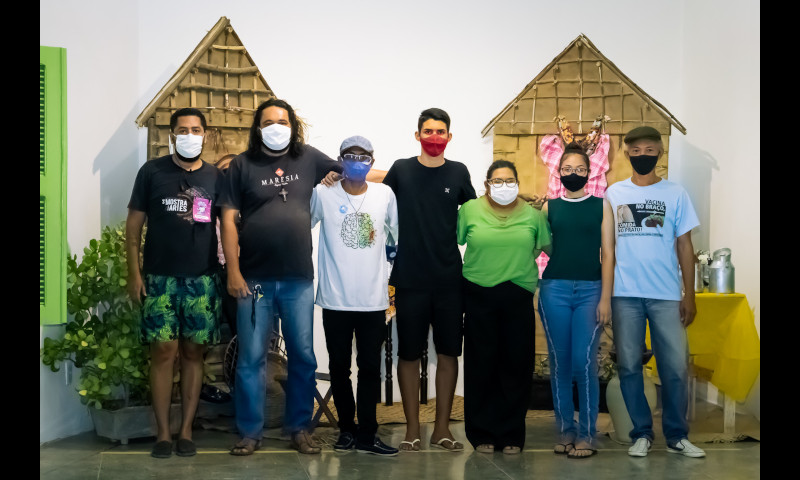 O Grupo Elus promoveu um bate-papo sobre o processo criativo da criação do cenário da exposição “Aqui, somos”, disponível na Multigaleria do CCBJ até o fim da Mostra das Artes 2021. A atividade é uma Contrapartida da Convocatória Pública para Manutenção das Atividades Artísticas e Culturais de Grupos e Coletivos do Grande Bom Jardim. O bate-papo aconteceu no Teatro Marcus Miranda do CCBJ.