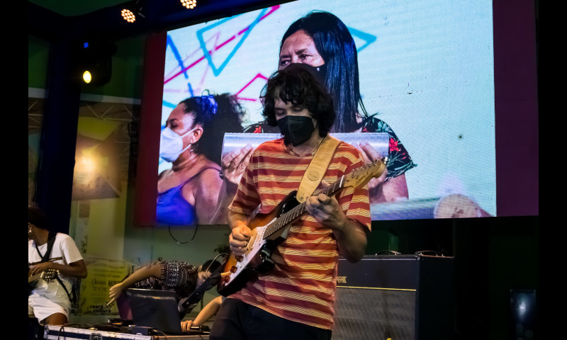 No palco da Praça Central do CCBJ, apresentamos o momento “Narrativas Musicais”, um encontro com os estudantes e professores do Curso Extensivo de Música da Escola de Cultura e Artes do CCBJ. O momento contou com um bate-papo com os presentes sobre os processos do curso e também com apresentações musicais individuais.